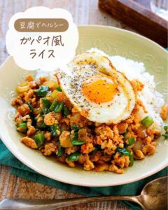 ♡半分豆腐!ヘルシーガパオ風ライス♡【#簡単レシピ #時短 #節約 #ひき肉 #丼 #ピーマン 】